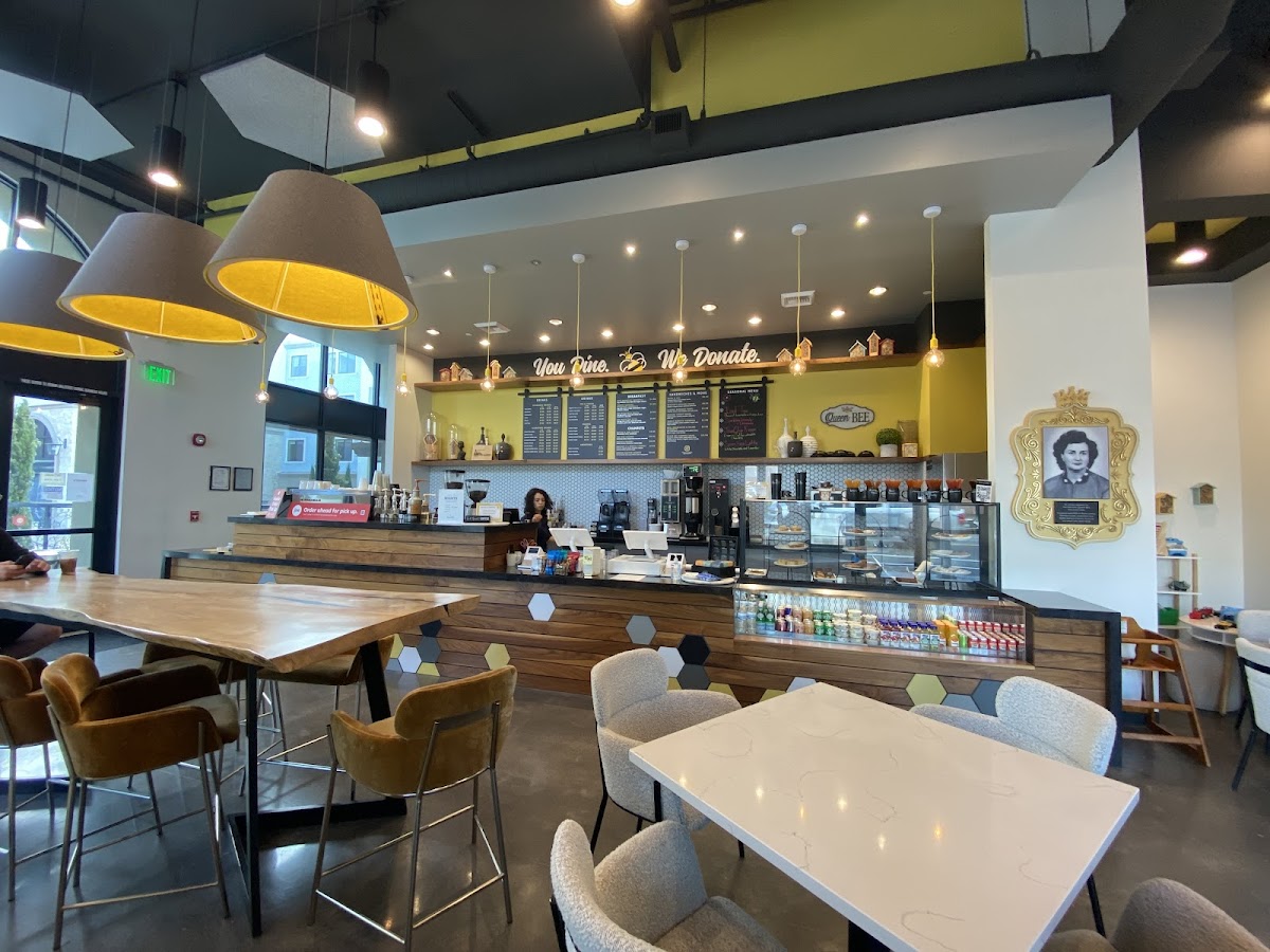 From the moment you walk in, you're greeted by a charming ambiance that strikes the perfect balance between chic and comfortable. With its cozy upholstered chairs and a variety of seating options—from intimate four-seater tables to a communal table ideal for group gatherings—Queen Bee is designed for relaxation and socialization. The spacious layout ensures that even on bustling mornings, the atmosphere remains serene and inviting, making it an ideal spot to unwind with friends or family.